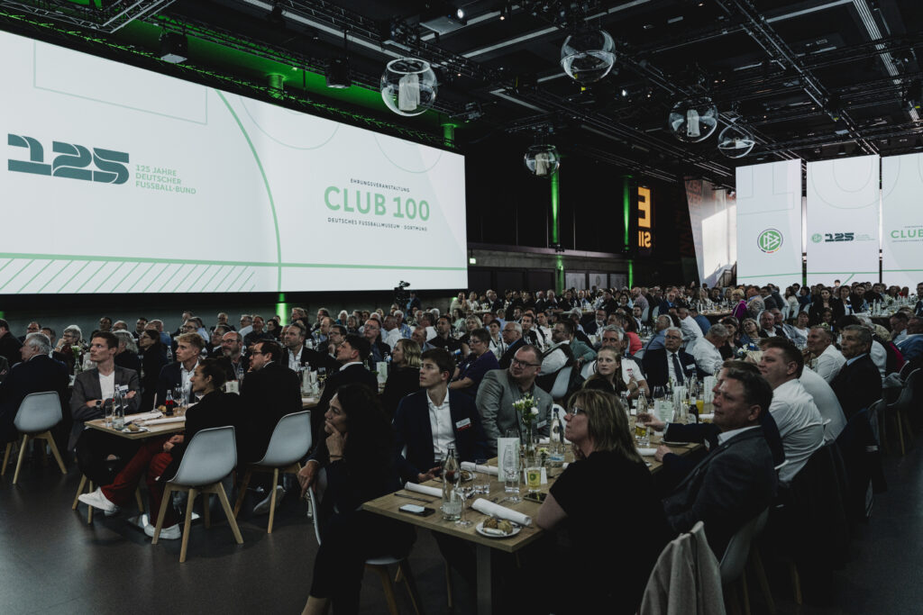 Und gebührend gefeiert wurden sie. Bereits am Nachmittag erhielten die Club-100-Mitglieder eine exklusive Führung durch das Deutsche Fußballmuseum und bestaunten zahlreiche Exponate. Von Weltmeister-Trikots aus dem Jahr 1954 bis zu dem Ball, den der Balljunge Noel beim Nations-League-Viertelfinalspiel vor zwei Wochen gegen Italien Joshua Kimmich zuwarf, um die italienische Hintermannschaft zu düpieren. Neben der Ehrungsveranstaltung erhalten die Mitglieder des Club 100 noch weitere Preise, etwa den Besuch eines Länderspiels sowie Bälle und Mini-Tore für den Verein.