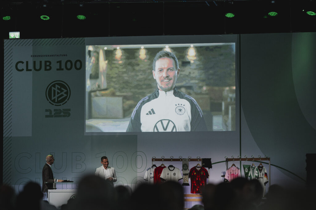 Auch Bundestrainer Julian Nagelsmann ließ es sich nicht nehmen, seine Wertschätzung für die Ehrenamtlichen zum Ausdruck zu bringen. Per Videobotschaft wandte er sich an die Gäste im Fußballmuseum. „Ich möchte euch allen ‚Danke‘ sagen für euer ehrenamtliches Engagement“, sagte der Bundestrainer. „Ich habe schon mehrfach gesagt, wie wichtig das Ehrenamt und die Vereinskultur in Deutschland sind. Ihr seid ein ganz wichtiger Teil unserer Gesellschaft, um junge Menschen an den Sport heranzuführen, ihren Charakter zu bilden. Lasst euch gebührend feiern!“