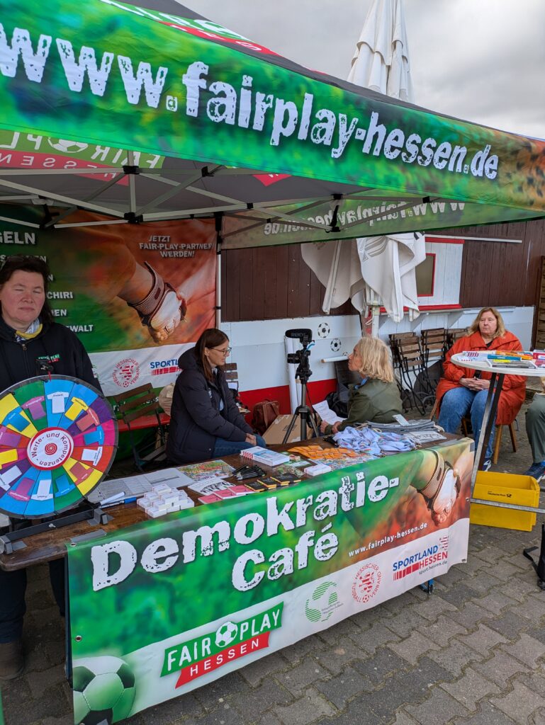 Ebenfalls vor Ort war die Journalistin Katrin Wegner, die das Angebot des Demokratie-Cafés beleuchtete und Silke Sinning zu Themen der Gesellschaftlichen Verantwortung und Gewaltprävention im hessischen Fußball interviewte. Der entsprechende Beitrag ist für die ARD-Woche »Pakt für mehr Respekt und Dialog” geplant, die Sendung soll zudem im Hessischen Rundfunk innerhalb der Sendung »die Ratgeber« laufen. Die Ausstrahlung in der ARD ist in der Woche ab 11. Mai vorgesehen, anschließend im Hessischen Rundfunk.