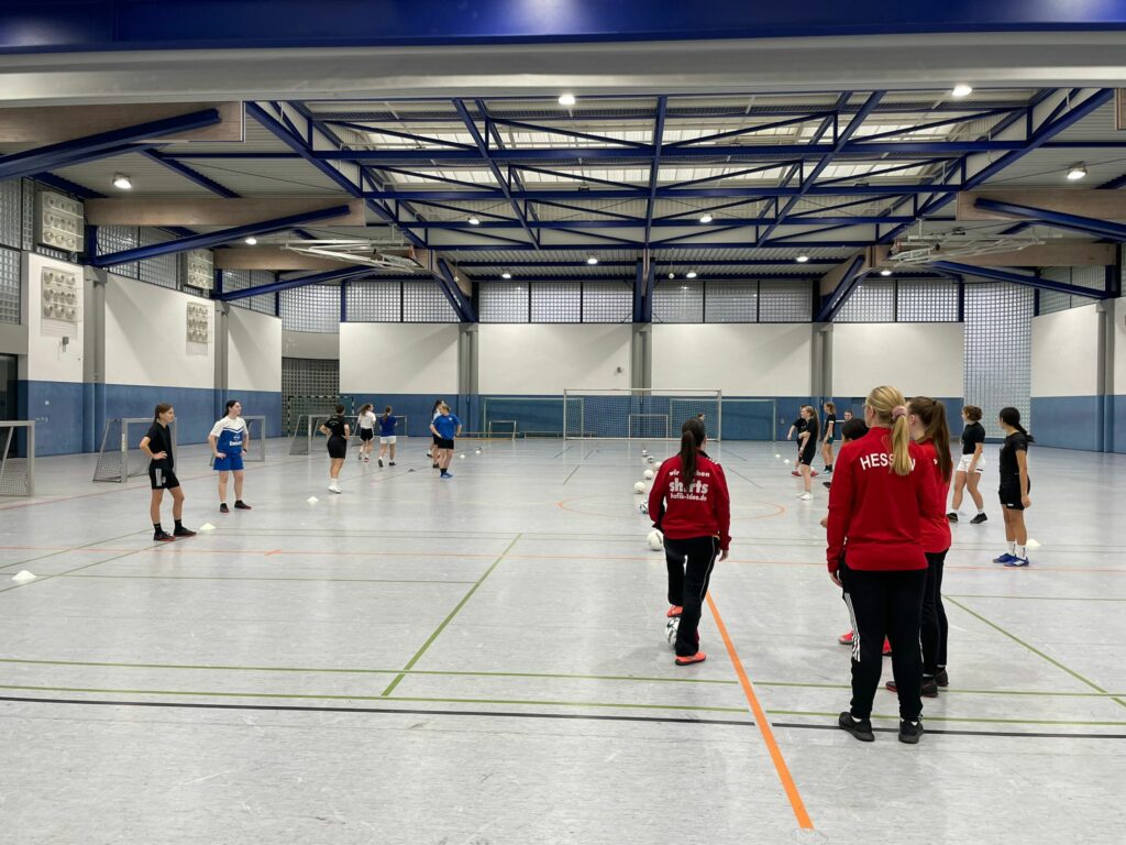 In jedem Schuljahr werden an interessierten Schulen Hessens dezentrale Junior-Coach Lehrgänge angeboten. Der erste Lehrgang des neuen Jahres fand dagegen unabhängig Schule in den Weihnachtsferien von 02.-05. Januar 2024 zentral an der Sportschule in Grünberg statt. Die Ausschreibung beschränkte sich hierbei ausschließlich auf weibliche Teilnehmerinnen. Vier Tage umfasste der Lehrgang und war vollgepackt mit verschiedenen Themen. Neben der generellen Vermittlung von Fußballwissen spielte ebenso die Persönlichkeitsentwicklung eine große Rolle. Unter der Leitung von HFV-Lehrreferentin Kimberly Heinrich und tatkräftiger Unterstützung durch Lisa Hisserich, konnten alle 22 Teilnehmerinnen nach einer abwechslungsreichen Woche ihr Zertifikat entgegennehmen. Bei der Übergabe war außerdem Ute Maaß als Stellvertretende Vorsitzende des Verbandausschusses für Frauen und Mädchen mit von der Partie.