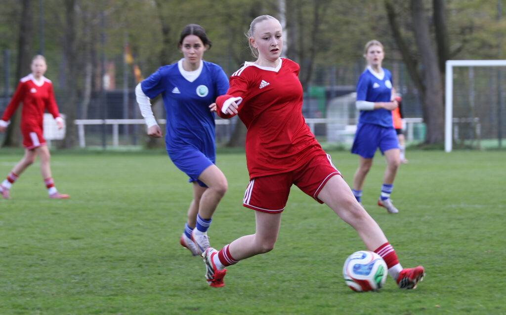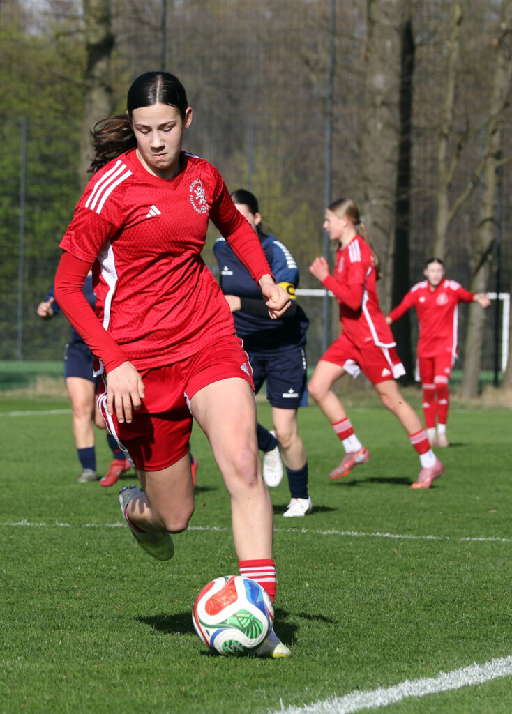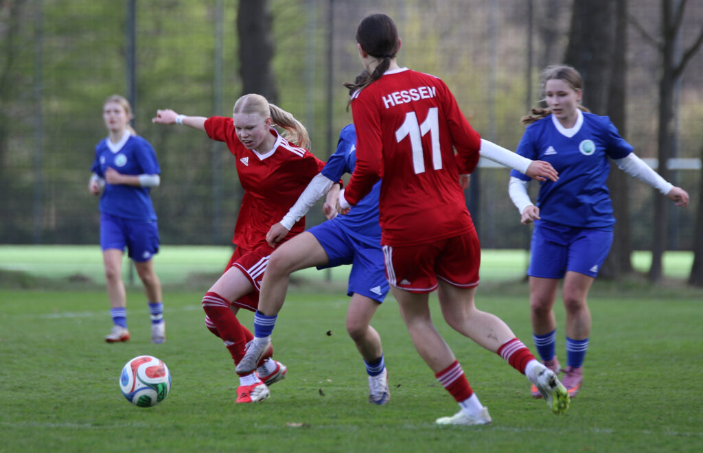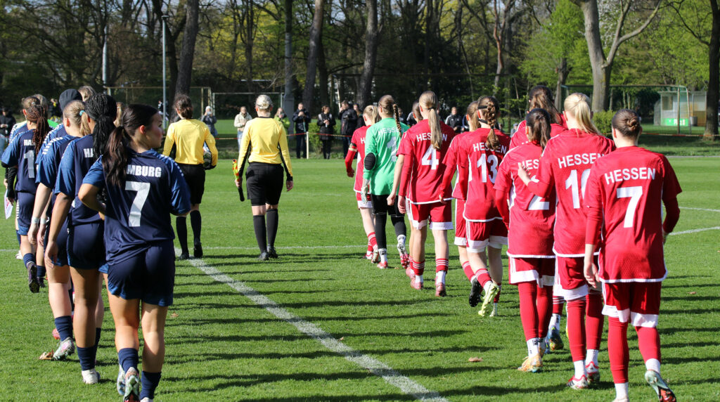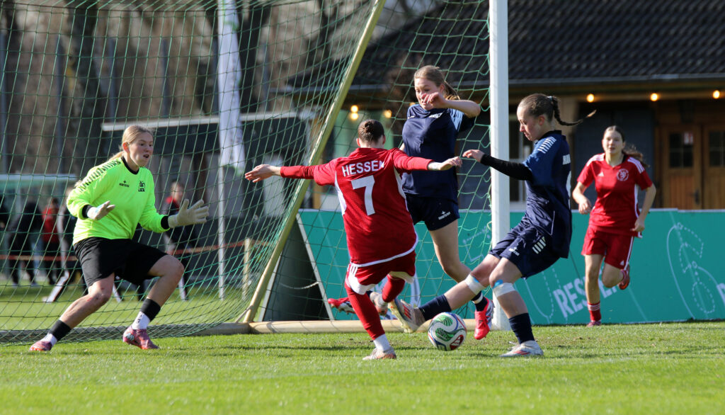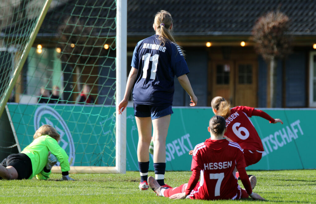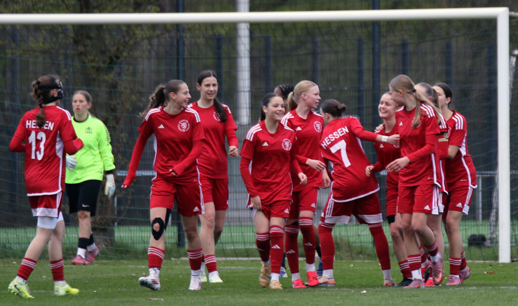 Den furiosen Auftakt am Donnerstag bildete der 6:1-Sieg gegen Hamburg. Bereits nach drei Minuten führten die jungen Hessinnen durch ein Tor von Tija Kasaj. Die Viertelstunde zwischen Minute 24 und 38 brachte mit vier Treffern, davon drei durch Anni Kuhl und einen durch Finja Schulte, die Entscheidung. Anschließend bekamen fünf Spielerinnen die Chance, sich zu zeigen. Clara Trümner erzielte sogar noch das 6:0, der Anschlusstreffer der Hamburgerinnen fiel kurz vor Abpfiff der Partie. „Ein guter Start, das Ergebnis hätte sogar noch höher ausfallen können“, sagte Trainerin Bärbel Wolinski.