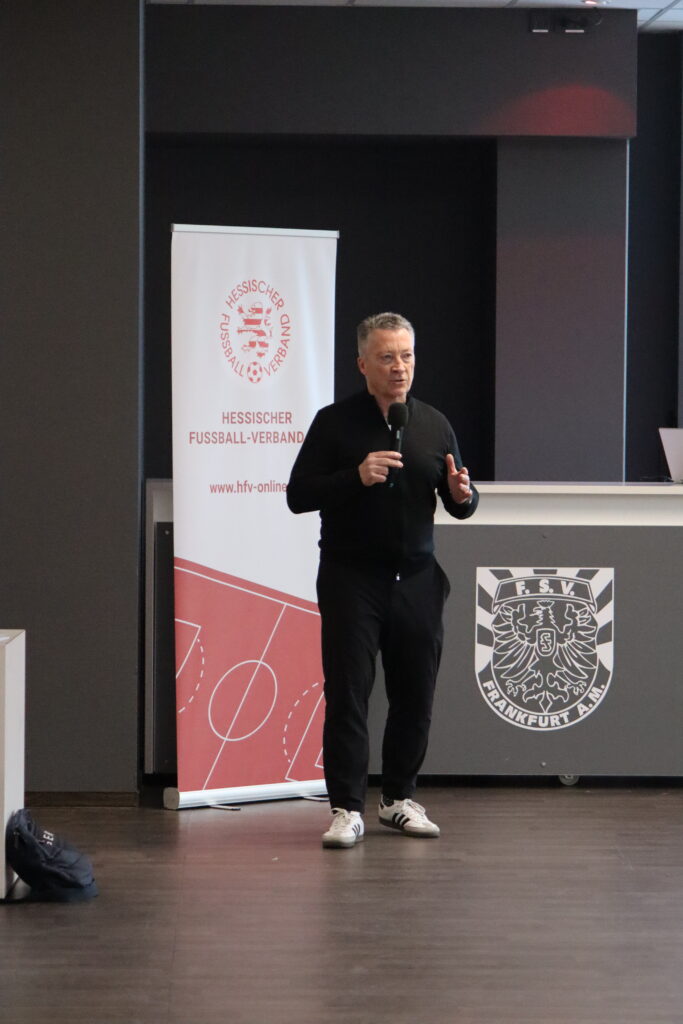 Oliver Frankenbach, langjähriger Finanzvorstand bei Eintracht Frankfurt, schloss den Vortragsteil mit seinem Beitrag über die Organisation und Entwicklung des Profifußballs ab. Frankenbach beleuchtete, wie sich die professionelle Organisation des Fußballs weiterentwickelt und welche Impulse daraus auch für den Amateurbereich abzuleiten sind.